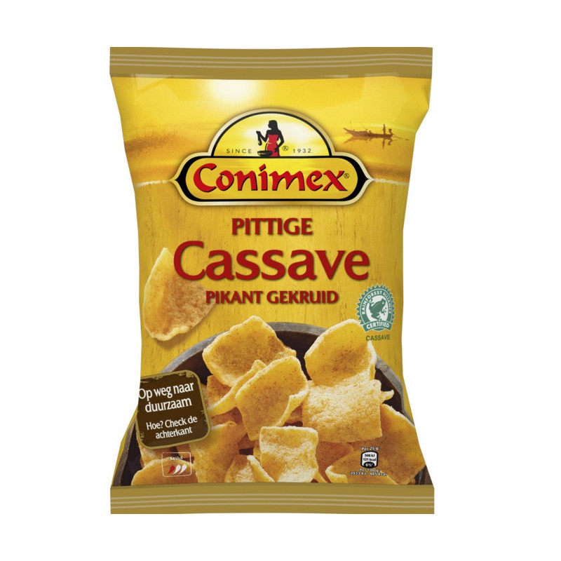Conimex Pittige cassave kroepoek, de originele Aziatische snack voor bij de nasi of als snack tussendoor!