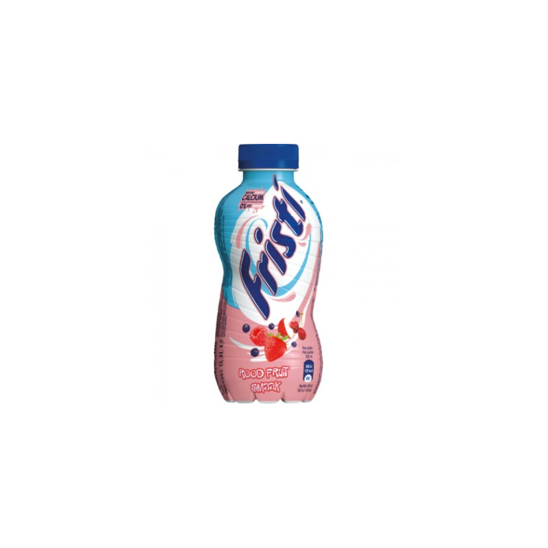Fristi Rood Fruit is een magere drinkyoghurt met de smaak van aardbei, framboos, kers en appel. Fristi Rood Fruit bevat 30% minder suiker dan andere langhoudbare magere gefermenteerde melkdranken.