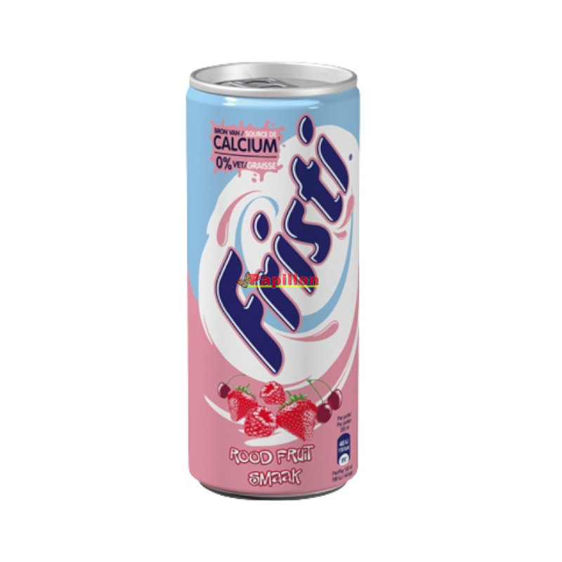 Fristi Rood Fruit is een magere drinkyoghurt met de smaak van aardbeien, frambozen en kersen. Fristi Rood Fruit bevat 30% minder suiker dan andere langhoudbare magere gefermenteerde melkdranken.