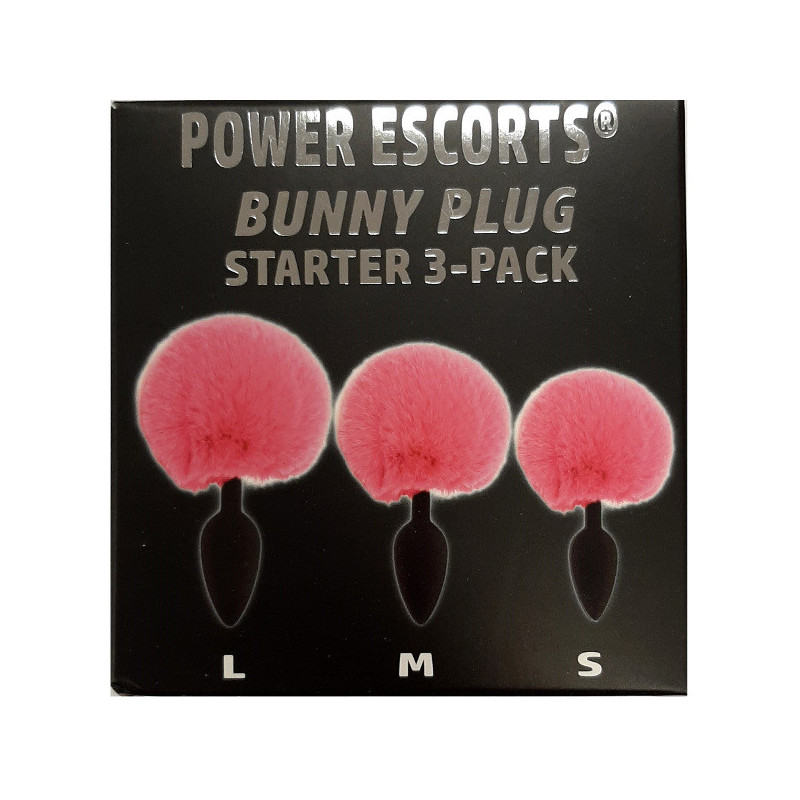 Starters Pack siliconen Bunny anaalpluggen met een roze fluffy staartje. Waterproof.
