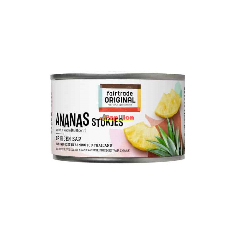 De ananassen van khun nipalin worden in Thailand verpakt in een praktisch klein blikje. Met alleen het eigen sap. Daardoor blijft de pure smaak van de ananas tot in jouw keuken bewaard. Zongerijpt en friszoet van smaak. Fairtrade.