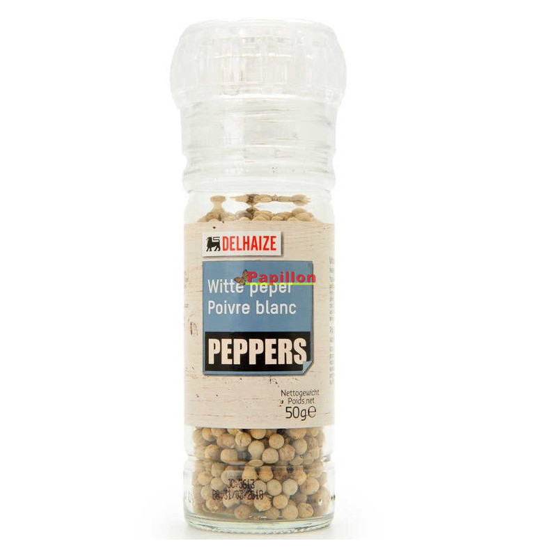 Witte peper is de gepelde en gedroogde rijpe vrucht van de peperplant. Het kan gebruikt worden voor het kruiden van allerlei gerechten. Witte peper is geliefd voor zijn zacht karakter en kleur.