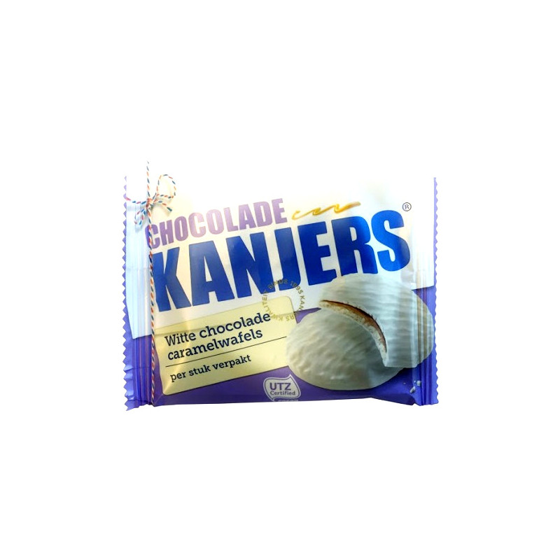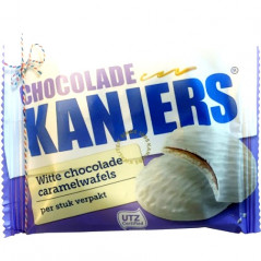 Witte Chocolade Kanjers zijn dé chocolade karamel wafels met een dikke laag Belgische chocolade. De chocolade is UTZ gecertificeerd.