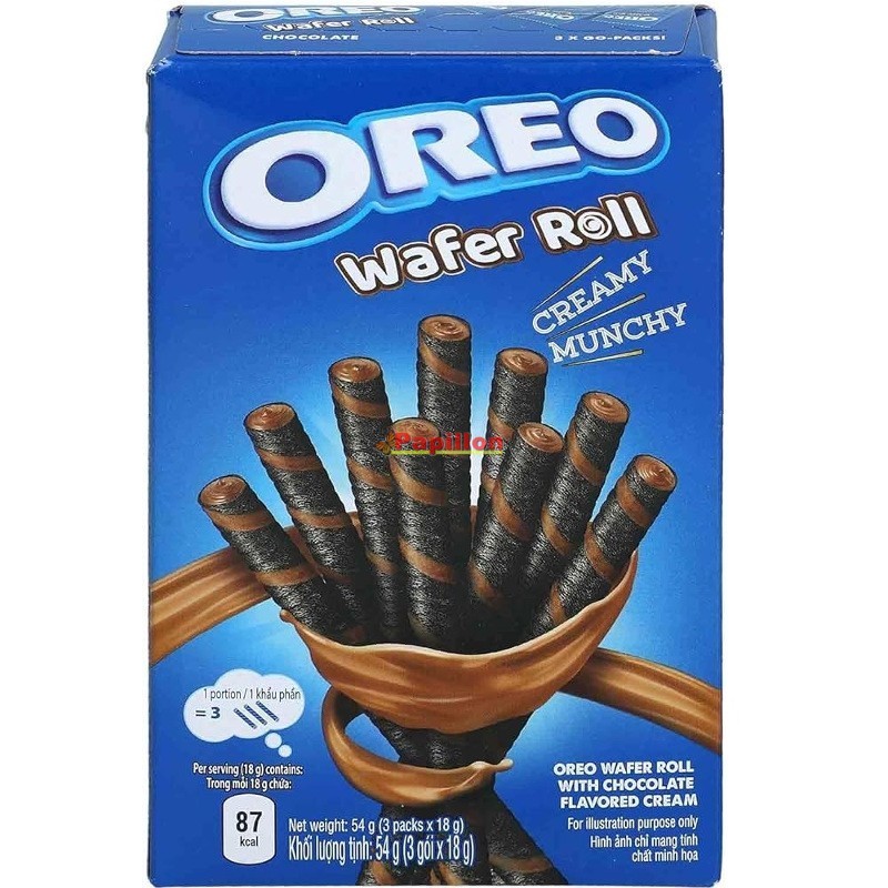 Wafelrol in Oreo-stijl met een laagje chocoladevulling aan de binnenkant.