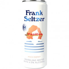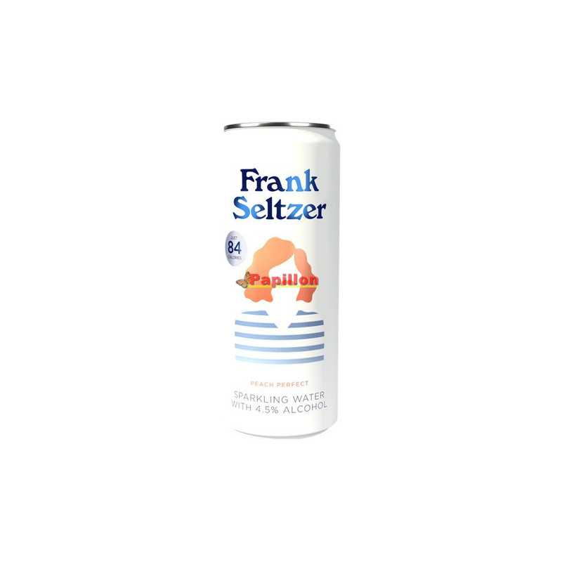 Frank Seltzer Peach Perfect is koolzuurhoudend water met 4.5% alcohol en perzik smaak. Het bevat geen toegevoegde suikers, slechts 84 calorieën per blikje en is zowel glutenvrij als vegan.