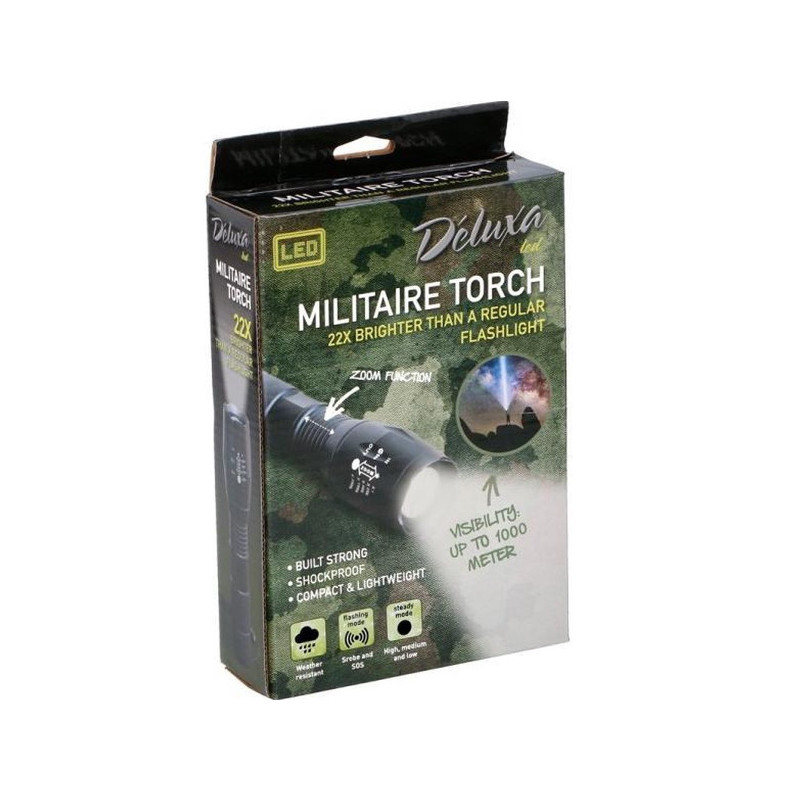 Deze krachtige professionele zaklamp heeft een enorm hoge lichtopbrengst met zoomfunctie. Hiermee kunt u met krachtig licht inzoomen op uw gewenste object. Daarbij beschikt de zaklamp over een knipperlicht/stroboscoop/SOS functie waardoor u goed zichtbaar bent in schemer en donker.