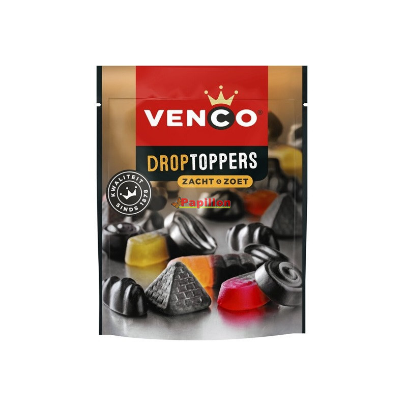Droptoppers Zacht & Zoet: een heerlijk zachte dropmix met droptoefjes, piramides en dropfruit duo's. Dé topselectie als je van zoete drop houdt.