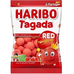 De zachte Tagada snoepjes van Haribo smelten meteen in de mond. Met hun aardbeiensmaak betoveren ze jong en oud telkens opnieuw. Zonder kunstmatige kleurstoffen.