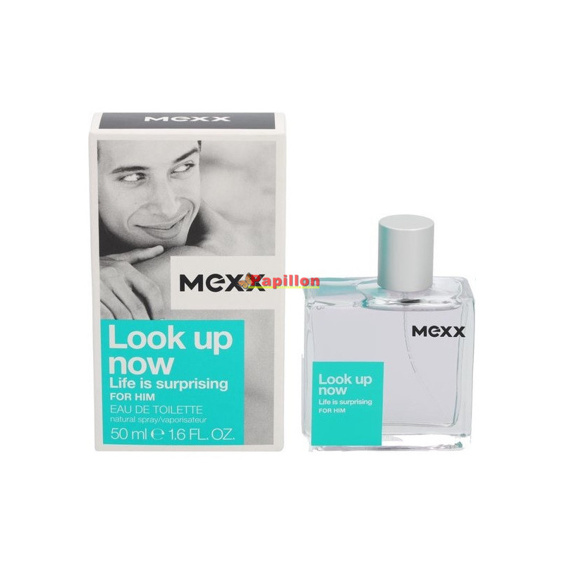 Look Up Now: Life Is Surprising van Mexx is Woody, aromatische geur voor mannen. Het bevat noten van groene noten, peer, lelietje-van-dalen, waterlelie, patchoeliblad, ceder, musk en amber.