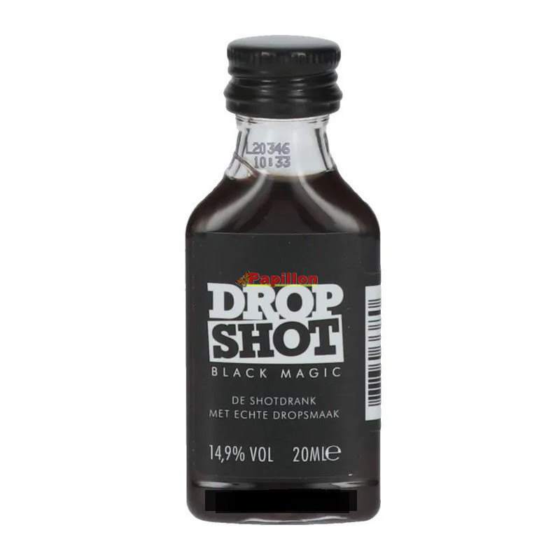 Dropshot Mini met het beroemde Nederlandse dropshot van De Kuyper. Hij heeft een karakteristieke zwarte kleur. Je zult een stevige droptoon ervaren die een lange afdronk met zich meebrengt.